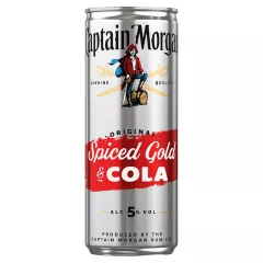 Dane produktowe Captain Morgan Original Spiced Gold & Cola Napój alkoholowy 250 ml Składniki: woda gazowana, napój spirytusowy Captain Morgan Spiced Gold (14,3 % v/v) (rum, cukier, aromaty, barwnik: karmel amoniakalno-siarczynowy (E150d)), cukier, aromaty ((zawiera barwnik: karmel...
