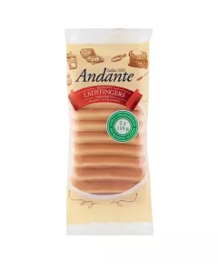 Dane produktowe Andante Biszkopty Ladyfingers 220 g (2 x 110 g) Składniki: Składniki na 100 g: mąka PSZENNA 50 g, JAJA 47 g, cukier 42 g, sól 0,3 g Dodatki Marka Andante Dodatkowe informacje Przechowywanie Przechowywać w suchym miejscu, chronić przed ciepłem....