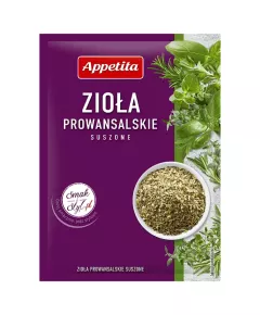 Dane produktowe Appetita Zioła prowansalskie 10 g Czy wiesz że... Zioła prowansalskie są jedną z najbardziej znanych mieszanek ziołowych na świecie. Składniki: oregano, bazylia, tymianek, cząber, estragon, rozmaryn Dodatki Marka Appetita Dodatkowe informacje Polecam, Ewa...
