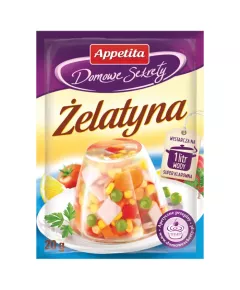 Dane produktowe Appetita Domowe Sekrety Żelatyna 20 g Domowe sposoby na... ... zdrowe paznokcie Żelatyna świetnie odżywia paznokcie. Wystarczy rozpuścić ją w ciepłej wodzie i wymoczyć dłonie w roztworze. Składniki: żelatyna spożywcza wieprzowa Dodatki Marka Appetita Dodatkowe...