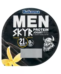 Dane produktowe Bakoma Men Jogurt kremowy typu skyr o smaku waniliowym 300 g Składniki: MLEKO zagęszczone odtłuszczone, ŚMIETANKA, białka MLEKA, ekstrakt waniliowy 0,01 %, naturalne aromaty, ekstrahowane ziarenka wanilii 0,01 %, substancja słodząca: sukraloza, kultury bakterii...