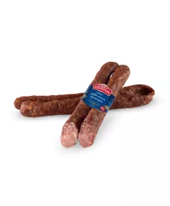 Dane produktowe Balcerzak Kiełbasa polska surowa dojrzewająca 230 g Składniki: mięso wieprzowe, sól, glukoza przyprawy, ekstrakty przypraw, przeciwutleniacz: E301, kultury startowe bakterii, substancja konserwująca: E250, Osłonka jadalna jelito wieprzowe, 100 g produktu wyprodukowano...