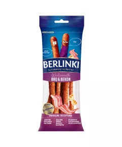 Dane produktowe Berlinki Bacon Kiełbasa 250 g Smak Berlinek to zasługa unikalnej receptury. Wysoka jakość mięsa, sekretna mieszanka naturalnych przypraw, precyzyjny proces parzenia w kontrolowanej temperaturze oraz wędzenie sprawiają, że Berlinki smakują wyśmienice i mają delikatną...