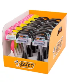 Dane produktowe BiC Shipper Mix Flex 3 Classic & Miss Soleil CC Maszynka do golenia 40 sztuk BIC Flex 3 Classic maszynka do golenia 1 sztuka - 3 niezależnie ruchome ostrza dla dokładniejszego i łagodniejszego golenia, łatwe do płukania - Długa, zakrzywiona rączka zapewnia lepszą kontrolę i...