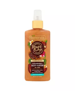 Dane produktowe Bielenda Magic Bronze Rozświetlający złoty eliksir do ciała 150 ml Ekspresowa poprawa wyglądu skóry aksamitne wykończenie Rozświetlający eliksir do ciała o lekkiej żelowej formule, zawierającej złotą perłę - błyskawicznie podkreśli opaleniznę, poprawi wygląd skóry, nada jej...