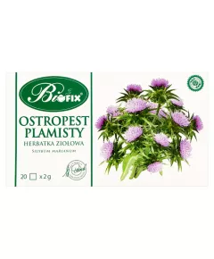 Dane produktowe Bifix Herbatka ziołowa ostropest plamisty 40 g (20 x 2 g) Posiadamy własne plantacje ziół Dbamy o dobre zbiory surowców Mamy własne laboratorium Jesteśmy rodzinną firmą Pracujemy w systemie ISO 9001:2008. Składniki: owoc ostropestu plamistego (Silybum marianum) Dodatki...