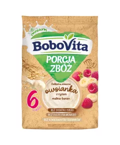 Dane produktowe BoboVita Porcja zbóż Delikatna mleczna owsianka z ryżem malina-banan po 6 miesiącu 210 g 1000 pierwszych dni 1000 pierwszych dni życia to wyjątkowy czas, w którym przez odpowiedni sposób żywienia możesz pozytywnie wpływać na zdrowie teraz i w przyszłości. Zadbaj o zdrowe...