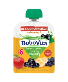 Dane produktowe BoboVita Mus banan z jagodami i czarną porzeczką po 6 miesiącu 80 g Wsparcie rozwoju odporności dziecka jest bardzo ważne - zwłaszcza w kluczowym okresie 1000 pierwszych dni życia, gdy układ odpornościowy wciąż się rozwija. Jednym ze składników odżywczych, który wspiera...