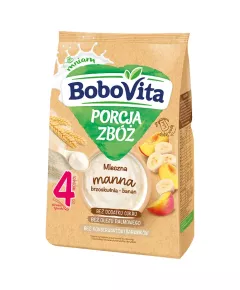 Dane produktowe BoboVita Porcja zbóż Kaszka mleczna manna brzoskwinia-banan po 4 miesiącu 210 g 1000 pierwszych dni 1000 pierwszych dni życia to wyjątkowy czas, w którym przez odpowiedni sposób żywienia możesz pozytywnie wpływać na zdrowie teraz i w przyszłości. Zadbaj o zdrowie i rozwój...