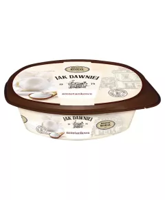 Dane produktowe Bracia Koral Jak dawniej Lody śmietanowe 900 ml Składniki: odtworzone MLEKO odtłuszczone, ŚMIETANKA 20 %, cukier, MASŁO, syrop glukozowy, odtłuszczone mleko w proszku, glukoza, emulgator: mono- i diglicerydy kwasów tłuszczowych, stabilizatory: mączka chleba...