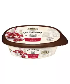 Dane produktowe Bracia Koral Jak dawniej Lody śmietanka & wiśnia 900 ml Składniki: odtworzone MLEKO odtłuszczone, ŚMIETANKA 16 %, wiśnie kandyzowane 12 % (wiśnie, cukier, syrop glukozowy, regulator kwasowości: kwas cytrynowy), cukier, sos wiśniowy 8 % (cukier, woda, wiśnia 13 %,...