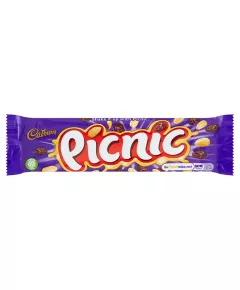 Dane produktowe Cadbury Picnic Czekolada mleczna z karmelem orzeszkami ziemnymi chrupkami i winogronami 48,4 g Składniki: cukier, ORZESZKI ZIEMNE (ARACHIDOWE), syrop glukozowo-fruktozowy, syrop glukozowy, mąka PSZENNA (z dodatkiem wapnia, żelaza, niacyny, tiaminy), suszone winogrona,...