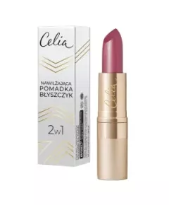 Celia 2 w 1 Nawilżająca Pomadka-błyszczyk 505 Łączy wszystkie zalety pomadki i błyszczyka. Posiada lekką formułę wzbogaconą o składniki nawilżające i witaminy E i C. Ma apetyczny winogronowy zapach. Efekt makijażu. Półtransparentny kolor w 16 odcieniach z delikatnymi błyszczącymi drobinami.