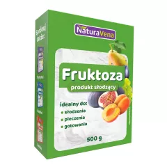 NaturaVena Fruktoza produkt słodzący 500 g Fruktoza jest cukrem prostym. Nazywana jest również cukrem owocowym, gdyż pozyskiwana jest z winogron, śliwek, brzoskwiń, fig, gruszek oraz innych owoców. Wykazuje działanie maskujące gorzki smak potraw. Naturalne cukry, do których zalicza się fruktoza...