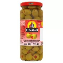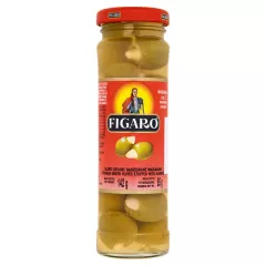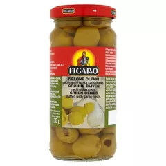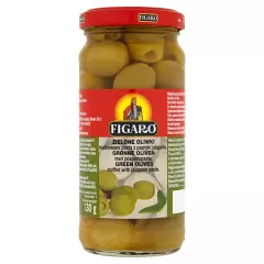 Dane produktowe Figaro Zielone oliwki nadziewane pastą z papryki jalapeño 240 g Składniki: oliwki zielone, woda, pasta z papryki jalapeño 6% (papryka jalapeño, stabilizator: alginian sodu, guma guar, substancja wiążąca: chlorek wapnia), sól, wzmacniacz smaku: glutaminian sodu,...