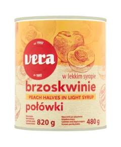 Dane produktowe Vera Brzoskwinie połówki w lekkim syropie 820 g Składniki: brzoskwinie połówki, woda, cukier, regulator kwasowości: kwas cytrynowy Dodatki Marka Vera Dodatkowe informacje Przechowywanie Przechowywać w suchym i chłodnym miejscu. Po otwarciu...