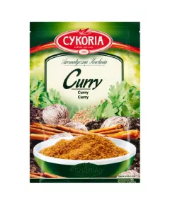 Dane produktowe Cykoria Aromatyczna Kuchnia Curry 25 g Curry jest jedną z najbardziej znanych na świecie, a zarazem najstarszych mieszanek przyprawowych. W skład przyprawy curry może wchodzić od kilku do kilkunastu ziół i przypraw, z których istotną rolę odgrywa kurkuma (sproszkowane...