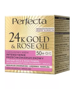 PERFECTA 24K GOLD & ROSE OIL 50+ LUKSUSOWY KREM INTENSYWNIE PRZECIWZMARSZCZKOWY NA DZIEŃ I NA NOC 50 ML