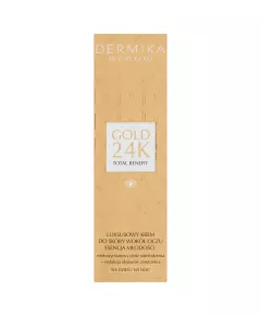 Dane produktowe Dermika Luxury Gold Luksusowy krem do skóry wokół oczu esencja młodości na dzień i na noc 15 ml „Mój urok to najpiękniejsza biżuteria. Olśniewam wewnętrzną siłą." Z wiekiem delikatna skóra okolic oczu traci jędrność, zmarszczki uwydatniają się, a blask spojrzenia przygasa....