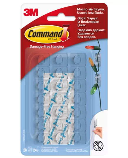 17026CLR Przezroczyste Haczyki CommandTM do wieszania ozdób . 20 haczyków + 24 mini paski