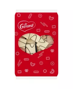 Dane produktowe dr Gerard Rogaliki pudrowane 595 g Składniki: mąka PSZENNA, cukier, tłuszcz roślinny (palmowy), serwatka w proszku (z MLEKA), pasteryzowana masa JAJOWA, skrobia ziemniaczana, syrop glukozowy, substancje spulchniające: węglany sodu, węglany amonu, emulgator: lecytyny,...