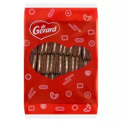 Dane produktowe dr Gerard Mafijne Brownie Herbatniki kakaowe przekładane kremem czekoladowym 199 g Składniki: mąka PSZENNA, tłuszcze roślinne (palmowy, rzepakowy), cukier, serwatka w proszku (z MLEKA), kakao o obniżonej zawartości tłuszczu 6,4%, syrop cukru inwertowanego, czekolada...