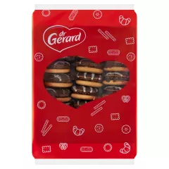 Dane produktowe dr Gerard KreMisie Herbatniki z kremem śmietankowym i czekoladą 850 g Składniki: mąka PSZENNA, cukier, czekolada 16 % [cukier, miazga kakaowa, tłuszcz kakaowy, emulgatory: E322 (z SOI), E476, aromat], tłuszcz roślinny (palmowy), serwatka w proszku (z MLEKA), syrop...