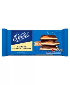 Dane produktowe E. Wedel Czekolada gorzka o smaku tiramisu 100 g Zabierz się z nami do krainy płynącej... kawą i amaretto, czyli do słonecznych Włoch! Gorzka tiramisu to czekolada inspirowana słynnym włoskim deserem. Jest jak... dolce far niente, czyli słodkie nicnierobienie. Pozwala...