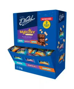 Dane produktowe E. Wedel Bajeczny Crunchy Cukierki w czekoladzie 3 kg Kokos - orzechowy kokosowy Wafelki - orzechowy z wafelkami Karmel - orzechowy karmelowy Ta paczka może zawierać mniej rodzajów cukierków niż prezentowane na opakowaniu. Składniki: cukier, czekolada deserowa 19 %...