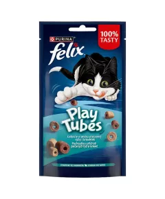 Dane produktowe Felix Play Tubes Łakocie o smaku pieczonej ryby i krewetek 50 g Uzupełniająca karma dla dorosłych kotów. Felix Play Tubes to smakowita okazja do codziennej zabawy i pielęgnowania przyjaźni z Twoim kotem! Nie będzie mógł się oprzeć ich wyjątkowej, turlającej się formie i...