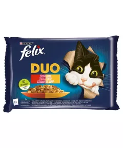 Dane produktowe Felix Duo Karma dla kotów wiejskie smaki w galaretce 340 g (4 x 85 g) Pełnoporcjowa karma dla dorosłych kotów. Karma odpowiednia także dla kotów wysterylizowanych. Składniki: z pyszną mieszanką Wołowiny i Drobiu w Galaretce: mięso i produkty pochodzenia zwierzęcego*...