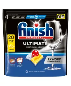 Dane produktowe Finish Ultimate Lemon Kapsułki do mycia naczyń w zmywarce 258 g (20 sztuk) Zapewniają najwyższy poziom czystości. Kapsułki z 3 komorami zapewnią głębokie czyszczenie i diamentowy blask, już od pierwszego użycia, za każdym razem. Zaawansowana formuła z ACTIVELIFT Technology...