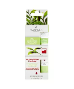 Żel do powiek i pod oczy ze świetlikiem i herbatą 15 ml - Floslek Bezalkoholowy żel ze świetlikiem i herbatą polecany jest do codziennej pielęgnacji skóry okolic oczu, zwłaszcza dla osób ze skłonnością do podrażnień i porannych podpuchnięć. Koi i regeneruje skórę powiek....