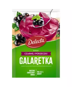 Dane produktowe Delecta Galaretka smak czarnej porzeczki 70 g Nasza galaretka charakteryzuje się mocno owocowym smakiem. Jest wyjątkowo klarowna i szybko tężeje. Przygotuj z nią pyszny deser dla siebie lub swoich bliskich, ot tak... prostu z serca. Składniki: cukier, żelatyna, regulator...