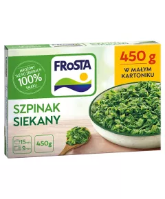 Dane produktowe FRoSTA Szpinak siekany 450 g Składniki: Dodatki Marka FRoSTA Dodatkowe informacje Przechowywanie Przechowywać w temperaturze poniżej -18 °C. Przechowywanie w domu: *(-6 °C): 4 dni, **(-12 °C): 3 tygodnie, ***(-18 °C): do daty minimalnej trwałości...