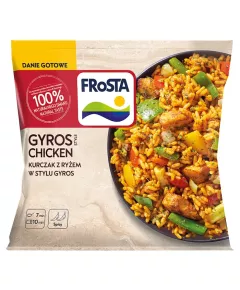 Dane produktowe FRoSTA Gyros Style Chicken Danie z kurczakiem w stylu gyros 450 g 100 % naturalnego smaku Przygotowaliśmy dla Ciebie naturalnie pyszne danie - bez barwników, aromatów, wzmacniaczy smaku i substancji konserwujących. Za to pełne smaku i naturalnych składników. FRoSTA. Smaczna i...