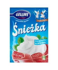 Dane produktowe Gellwe Śnieżka deser w proszku 60 g Składniki: cukier, syrop glukozowy, całkowicie utwardzone oleje roślinne (palmowy, kokosowy), skrobie (skrobia ziemniaczana, skrobia PSZENNA), emulgatory (mono- i diglicerydy kwasów tłuszczowych estryfikowane kwasem octowym, mono- i...