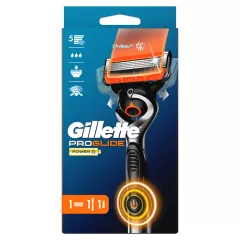 Dane produktowe Gillette ProGlide Power Golenie Maszynka do golenia dla mężczyzn, 1 ostrze wymienne Maszynka do golenia dla mężczyzn Gillette ProGlide Power łączy kultową precyzję golenia Gillette z komfortem i stylowym wyglądem. Ta maszynka do golenia dla mężczyzn jest wyposażona w większy...