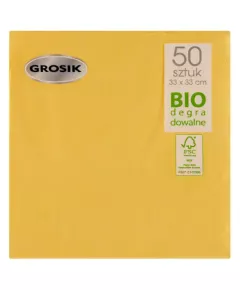 Dane produktowe Grosik Serwetki biodegradowalne żółte 33 x 33 cm 50 sztuk Składniki: Dodatki Marka Grosik Dodatkowe informacje Przechowywanie Przechowywać w temperaturze otoczenia Jednostka sprzedażowa Waga brutto - 182 Wysokość- 167 Szerokość- 167...