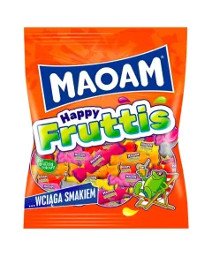 Dane produktowe Maoam Happy Fruttis Guma rozpuszczalna 140 g Maoam Happy Fruttis Wybierz swój ulubiony smak! Cola Wiśnia Cytryna Truskawka Malina Pomarańcza Składniki: cukier, syrop glukozowy, tłuszcz palmowy, substancja utrzymująca wilgoć: syrop sorbitolowy, kwas: kwas cytrynowy,...