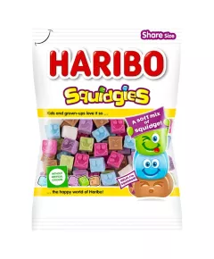 Dane produktowe Haribo Squidgies Żelko-pianki o smaku owocowym oraz coli 160 g malinowy* wiśniowy* truskawkowy* jabłkowy* cola* *smaki Składniki: cukier, syrop glukozowy, żelatyna, kwas: kwas cytrynowy, aromat, koncentraty owocowe i roślinne: jabłkowy, borówkowy, z czarnej porzeczki,...