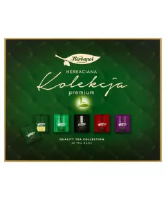 Dane produktowe Herbapol Premium Herbaciana kolekcja 91,2 g (6 x 8 torebek) Składniki: Earl Grey: herbata czarna (98%), aromat, Czarna: herbata czarna, Malina: kwiat hibiskusa, owoc maliny (20%), jabłko, owoc aronii, aromat, liść jeżyny, Mięta: liść mięty pieprzowej, Zielona z cytryną:...
