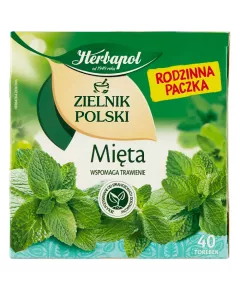Dane produktowe Herbapol Zielnik Polski Herbatka ziołowa mięta 80 g (40 x 2 g) Mięta wspomaga procesy trawienne przyczyniając się do prawidłowego funkcjonowania układu pokarmowego oraz pomaga w odprężeniu organizmu. Korzystny efekt wynikający z deklarowanego działania występuje w przypadku...