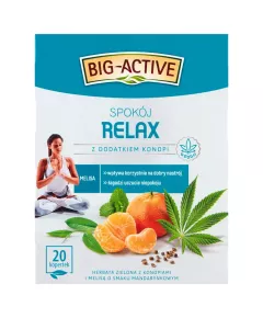 Dane produktowe Big-Active Relax Herbata zielona spokój 30 g (20 x 1,5 g) Herbata Spokój Relax jest szczególnie polecana w stanach zwiększonego niepokoju, rozdrażnienia oraz napięcia nerwowego i sytuacjach stresowych. Zawarta w niej melisa przyczynia się do łagodzenia uczucia niepokoju,...