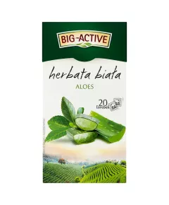 Dane produktowe Big-Active Herbata biała aloes 30 g (20 x 1,5 g) Biała herbata uzupełniona o delikatność aloesu to połączenie niepowtarzalnego smaku i zapachu. Ta ciekawa kompozycja zawdzięcza swoje działanie subtelności białej herbaty i aloesu. Nasza herbata biała zapakowana jest w torebkę...