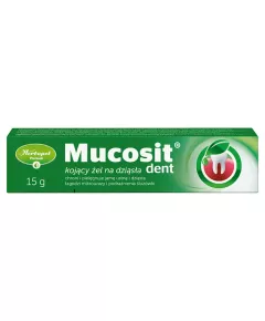 Dane produktowe Mucosit dent Kojący żel na dziąsła 15 g Mucosit dent jest ochronno-kojącym żelem do pielęgnacji jamy ustnej i dziąseł. Chroni przed podrażnieniami, otarciami spowodowanymi przez protezy. Regeneruje delikatną i wrażliwą śluzówkę. Koi i łagodzi podrażnienia i otarcia, nawilża i...