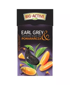 Dane produktowe Big-Active Herbata czarna Earl Grey & pomarańcza 80 g Pomarańcza + czarna herbata + płatki krokosza = wyjątkowy smak Składniki: herbata czarna (76,7 %), skórka pomarańczy (11 %), jabłko, aromaty, płatki kwiatu krokosza barwierskiego (0,3 %) Dodatki Marka...