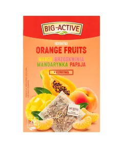 Dane produktowe Big-Active Orange Fruits Herbatka 40 g (20 x 2 g) Każdą naszą torebkę zapakowaliśmy w kopertkę, która jest gwarancją utrzymania smaku i aromatu. Egzotyczne owoce + zaskakujący składnik - kurkuma = intrygujący smak Składniki: jabłko, kwiat hibiskusa, skórka pomarańczy,...