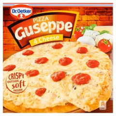 Dane produktowe Dr. Oetker Guseppe Pizza 4 sery 335 g Składniki: mąka PSZENNA, woda, 16 % SER (MOZZARELLA, EDAMSKI, TYLŻYCKI, SER PLEŚNIOWY BŁĘKITNY), ŚMIETANKA, olej rzepakowy, drożdże piekarskie, koncentrat pomidorowy, MASŁO, sól, skrobie modyfikowane, cukier, zioła, MLEKO...