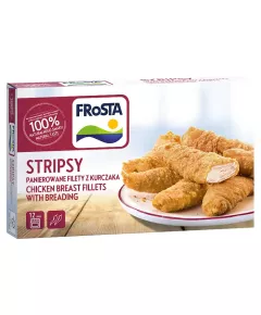 Dane produktowe FRoSTA Stripsy Panierowane filety z kurczaka 250 g Czy wiesz, że... Mrożonki nie potrzebują substancji konserwujących, dlatego w naszych daniach na patelnię ich nie znajdziesz - to proste! Składniki: filet z piersi kurczaka 62 %, mąka PSZENNA, olej rzepakowy, woda, sól,...
